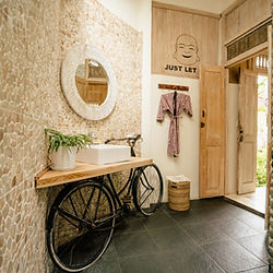 Arjuna//2 twin beds//$3799 per person Take in the stunning panoramic views of the lush jungle from Arjuna's private terrace. Inspired by the natural beauty of the jungle, this spacious room features a comfortable living area with a sofa and a cozy hanging egg chair perfect for relaxation. Enjoy a starlit skinny dip in your private infinity pool, meditate, or sunbathe on the deck. Arjuna offers a harmonious blend of indoor and outdoor spaces, each equally inviting. The super king-size bed can be converted into two single beds upon request, complemented by eco-friendly A/C and a fan for your comfort. Stay refreshed with a personal gallon of Balian mineral water, and enjoy complimentary coffee, tea, and goodies from the mini bar. A security box and wardrobe are provided to keep your valuables safe. And yes, there’s a bicycle in the bathroom—just for display! The bathroom also includes a hot shower, towels, bathrobes, slippers, and our all-natural Basundari toiletries. *NOTE: When completing the booking form, add your booking buddies full name and email address in your registration. Traveling solo? We will do our best to pair you. Review our Terms & Conditions link at checkout.